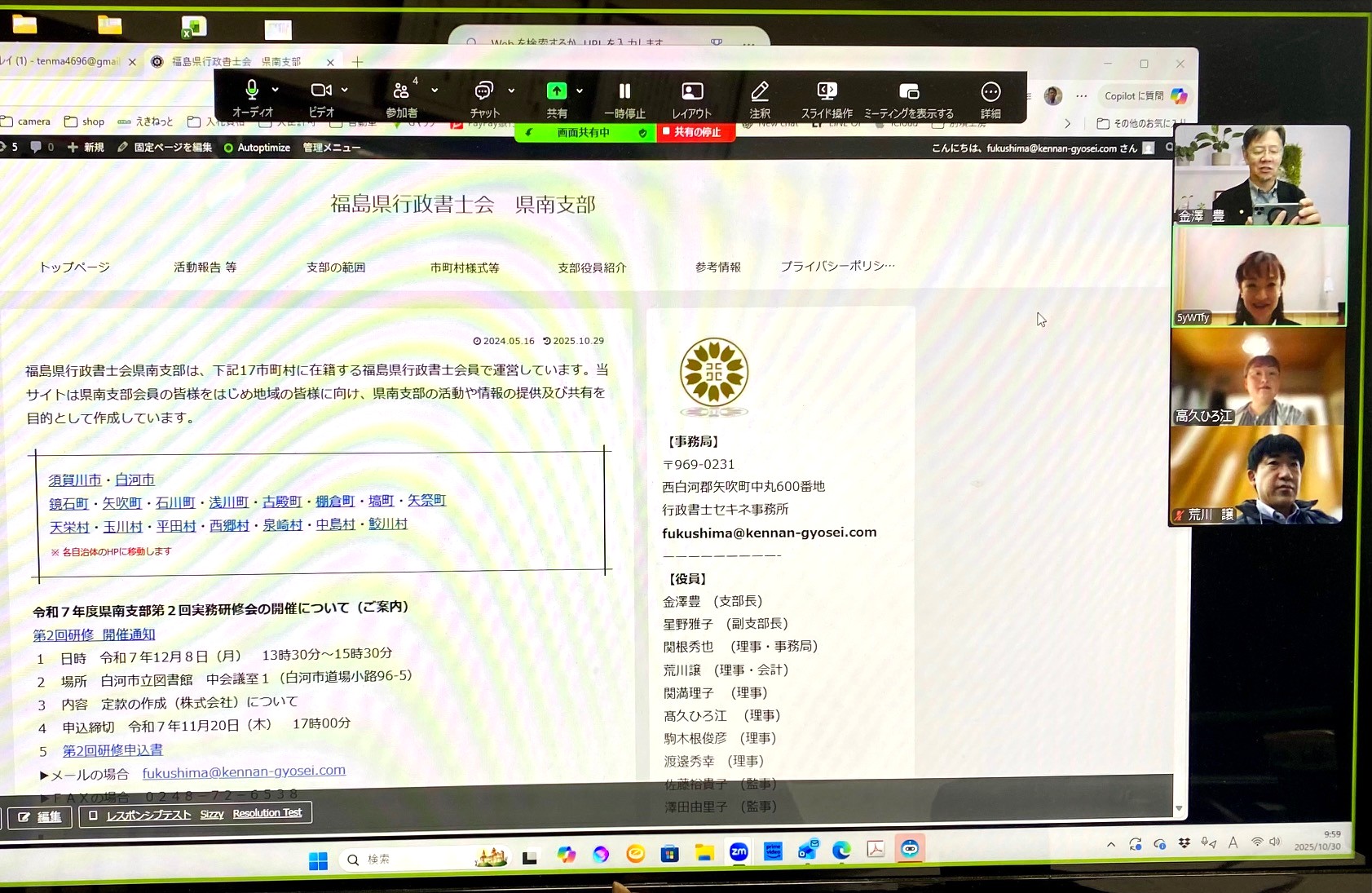 打合せの結果、県南支部のホームページは、引続き継続して運営することとし、より皆様への便利な情報の場として活用されるよう尽力することで終了いたしました。